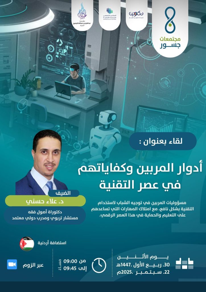 المربي اليوم ليس مجرد ناقل معرفة، بل مؤثر، محفز، قدوة، ميسر، ومخطط استراتيجي للتربية.