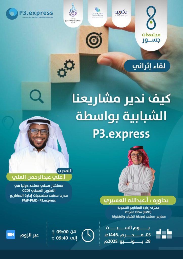 قدم م. علي منهجية B3 Express كنموذج عملي مبسط لإدارة المشاريع، مناسب للأشخاص أو الفرق الصغيرة، خاصة في البيئات الشبابية أو المجتمعية.
